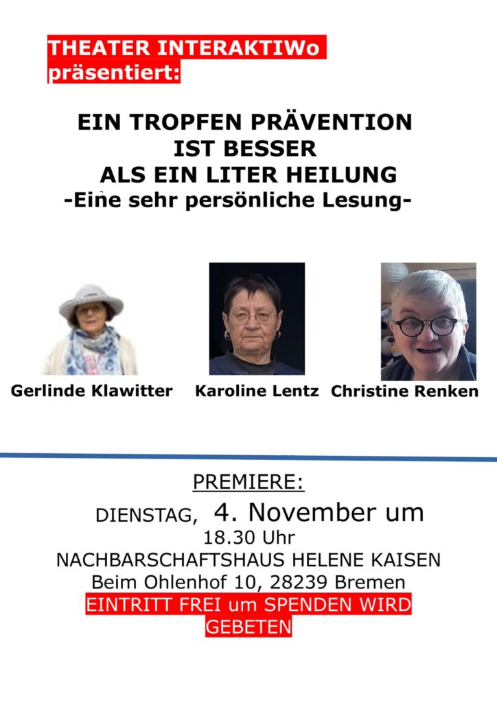 THEATER INTERAKTIWo mit der Lesung: „ein Tropfen Prävention ist besser als ein Liter Heilung“